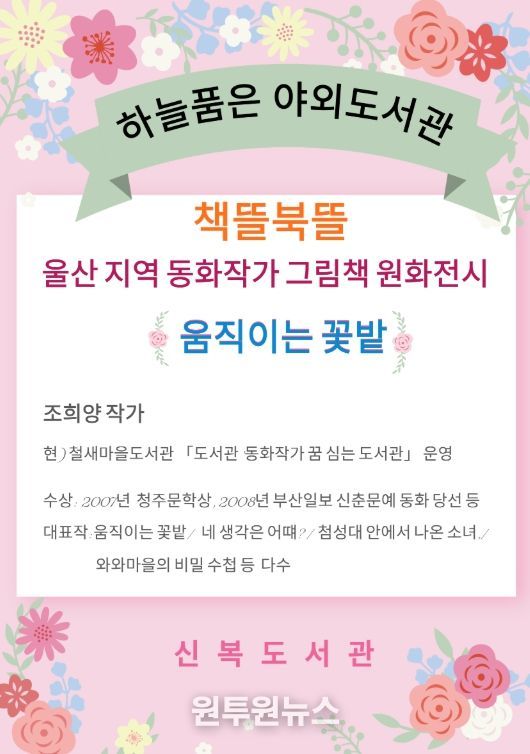 이번 전시는 지난 12일부터 18일까지 도서관 1층 야외공간에서 열렸고, 지역에서 활발히 활동하고 있는 동화작가 조희양이 그려낸 따뜻한 이야기 ‘움직이는 꽃밭’과 섬세한 원화가 선보였다.