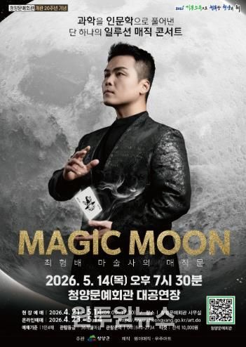 (원투원뉴스) 청양군이 5월 가정의 달을 맞아 온 가족이 함께 환상적인 마술의 세계를 경험할 수 있는 최형배 마술사의 일루션 매직쇼 ‘매직 문(MAGIC MOON)’을 개최한다.