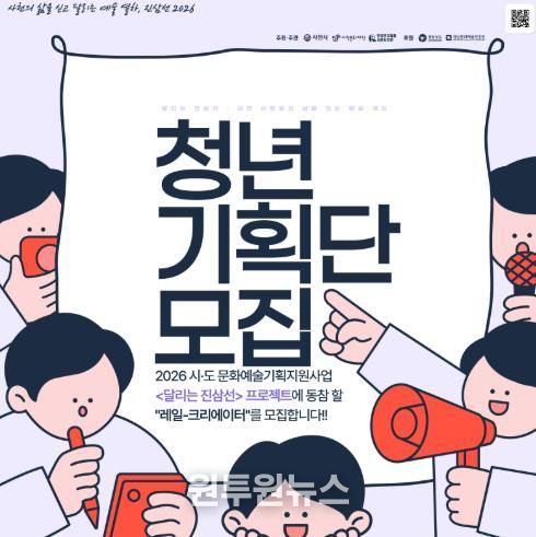 (원투원뉴스) 사천시는 “2026 시·도 문화예술기획지원사업”의 일환으로 진행되는 지역특화 문화예술 콘텐츠 ‘달리는 진삼선’ 프로젝트를 이끌어갈 청년 기획단 ‘레일-크리에이터’를 모집한다.