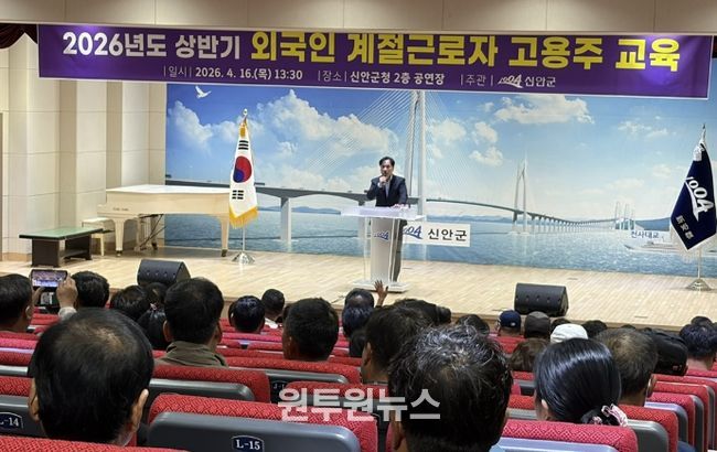 (원투원뉴스) 신안군은 외국인 계절근로자의 인권 보호와 안전한 고용 환경 조성을 위해 지난 16일, 관내 농·어업 고용주를 대상으로 ‘2026년 상반기 외국인 계절근로자 고용주 인권 및 3대 보험 의무가입 교육’을 실시했다고 밝혔다.