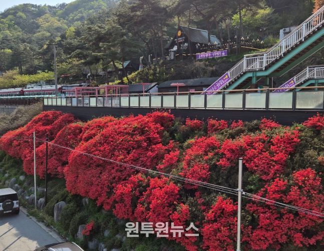 특히 옛 철길을 따라 이어지는 철쭉길은 병풍처럼 펼쳐진 꽃 풍경이 인상적이다.