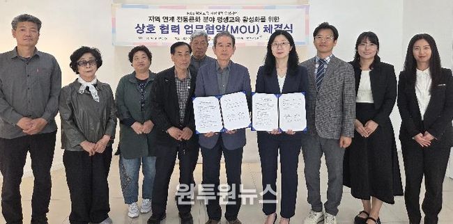 RISE사업단 지역교육혁신센터 김선영 센터장 직무대리는 “지역 전통문화의 계승과 발전을 위해 대학과 지역 전문기관 간 협력이 중요한 만큼, 이번 업무협약으로 전통문화 교육과 인재양성 프로그램 운영을 활성화하고 지역 평생교육 기반을 더욱 강화할 수 있기를 기대한다.”라고 말했다.