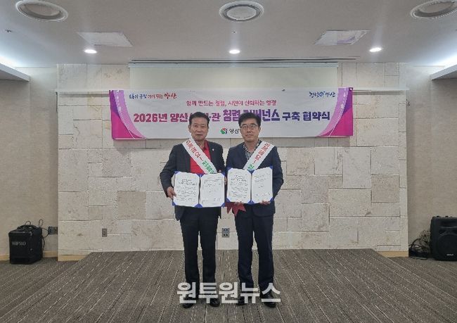 (원투원뉴스) 양산시 시민통합위원회(위원장 박원현)와 양산시 소통담당관은 2026년 4월 16일, 양산시립박물관에서 민‧관 청렴거버넌스 공동 협약식을 체결했다. 이번 협약은 청렴한 행정문화 정착과 시민과의 신뢰 구축을 목표로 마련됐다.