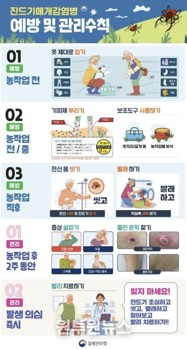 아울러 마을 방송, 안내문, 홍보물 배부 등을 통해 진드기 매개 감염병 예방 수칙을 지속적으로 안내할 예정이다.