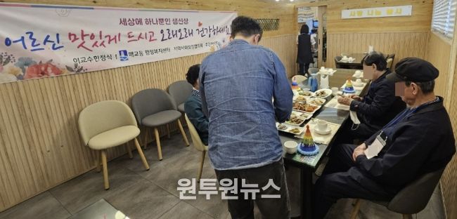 (원투원뉴스) 수원시 팔달구 매교동은 지난 15일, ‘세상에 하나뿐인 생신상(생신 도래 어르신 생신상 차림)’ 사업으로 2026년 4월달 생신을 맞이한 관내 저소득층 어르신들께 생신상 한상차림을 대접했다.