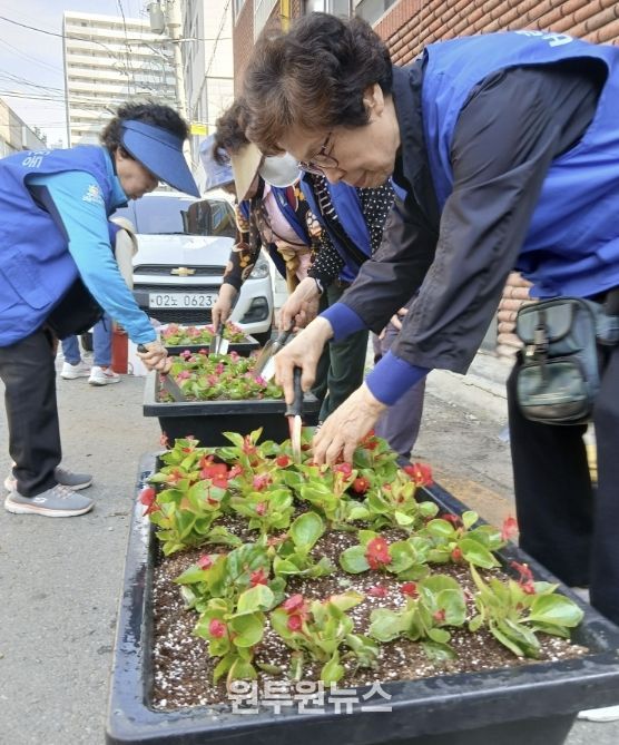 (원투원뉴스) 수원시 팔달구 우만2동 바르게살기운동위원회는 지난 15일, 상습 무단투기지역 지킴이 활동의 일환으로 가로경관과 골목환경 개선을 위한 초화류를 식재 활동을 전개했다.