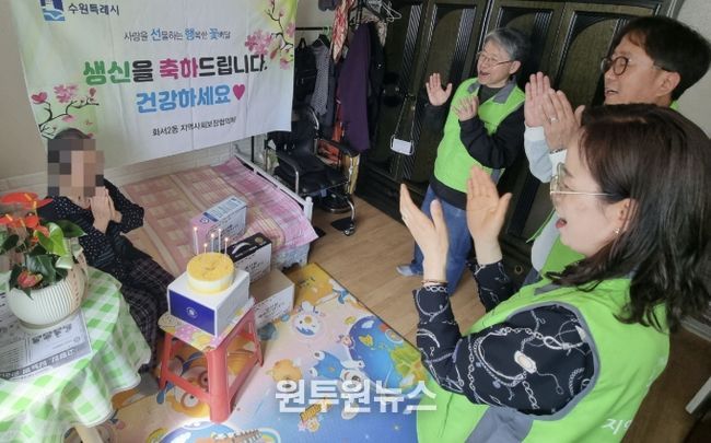 (원투원뉴스) 수원시 팔달구 화서2동 지역사회보장협의체는 지난 16일, 관내 홀몸 어르신 가정을 직접 방문해 생신을 축하하고 안부를 살피는 ‘선행꽃(사랑을 선물하는 행복한 꽃배달)’ 사업을 추진하며 지역사회에 훈훈한 감동을 전했다.