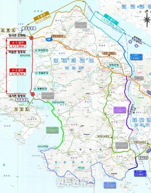 이에 강화군은 이달부터 인천광역시와 긴밀히 협업해 자체 예산을 투입, ‘내가면 황청리~하점면 창후리’ 구간에 대한 사전 타당성 조사 용역을 선제적으로 추진하며 사업 정상화의 물꼬를 튼다.