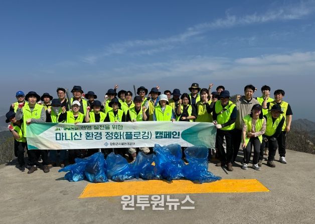 (원투원뉴스) 강화군시설관리공단이 지난 15일, ESG 경영 실천의 일환으로 마니산 일원에서 플로깅(plogging) 활동을 실시했다.
