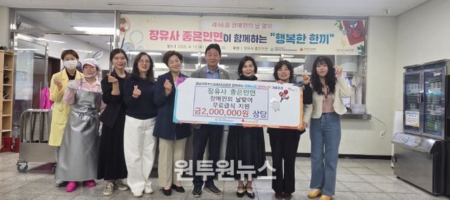 (원투원뉴스) (재)김해시복지재단서부장애인종합복지관에서는 지난 16일 장유사 "좋은인연"(회장 손해진)과 함께 '제46회 장애인의 날 맞이 행복한 한끼' 나눔 행사를 실시했다.