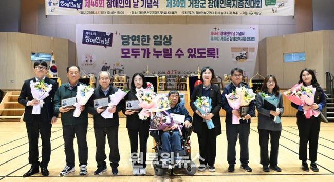 오후에는 ‘제30회 거창군 장애인복지증진대회’가 열려 장기 자랑과 경품 추첨 등 다채로운 프로그램이 진행됐으며, 장애인과 비장애인이 한데 어우러지는 소통과 화합의 한마당이 펼쳐졌다.