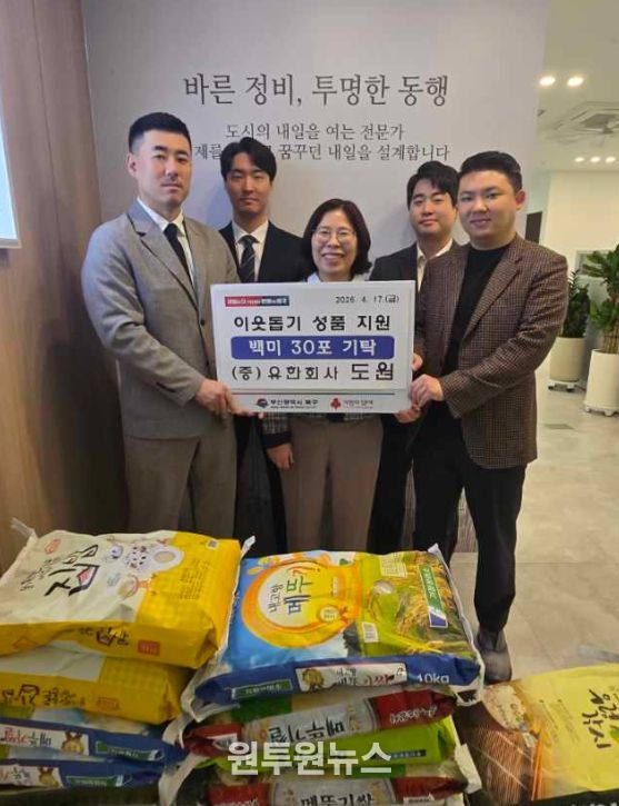 유한회사 도원은 해운대구 소재 도시정비업체로, 지난 4월 1일 개업을 기념해 쌀 기부를 선택하며 이웃과 온정을 나누고 기업의 사회적 책임을 실천하고자 이번 나눔을 마련했다.