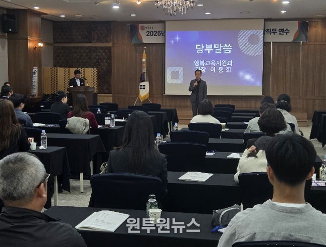 (원투원뉴스) 경북교육청은 17일 경주시에 있는 더케이호텔경주에서 도내 교육지원청 학원・공익법인・평생교육시설 업무 담당자 60여 명을 대상으로 ‘2026년 상반기 통합 직무연수’를 개최했다고 밝혔다.