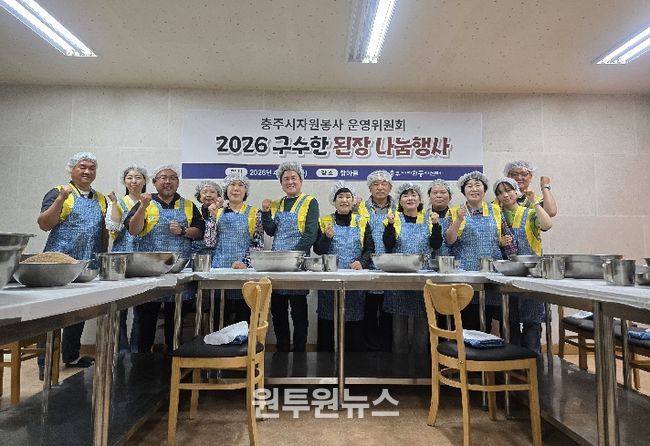 (원투원뉴스) 충주시자원봉사운영위원회(위원장 박영찬)는 지난 17일, 충주 항아골(대표 김명숙)에서 지역 내 소외계층의 건강한 식생활 지원을 위한 ‘2026 구수한 된장 나눔’ 행사를 가졌다.