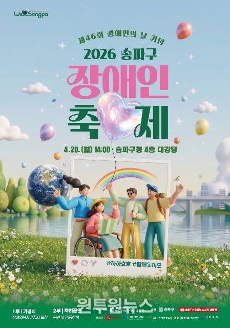 (원투원뉴스) 서울 송파구는 제46회 장애인의 날을 맞아 오는 20일 구청 대강당에서 ‘2026 송파구 장애인 축제-하하호호 함께 웃어요’를 개최한다고 밝혔다.