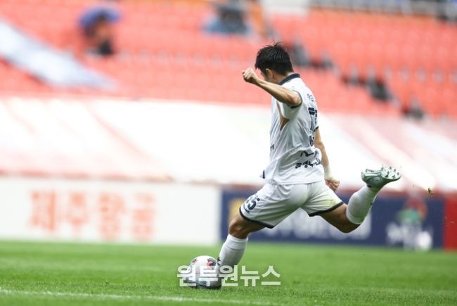 위기 뒤 곧바로 기회가 찾아왔다. 전반 27분, 제주 페널티박스 앞에서 박태준이 절묘한 드리블로 상대 파울을 유도했다. 이어진 프리킥을 직접 슈팅으로 처리했고, 수비벽에 굴절된 공이 그대로 골문으로 빨려들어가며 1대 0 리드를 잡고 전반을 마쳤다.