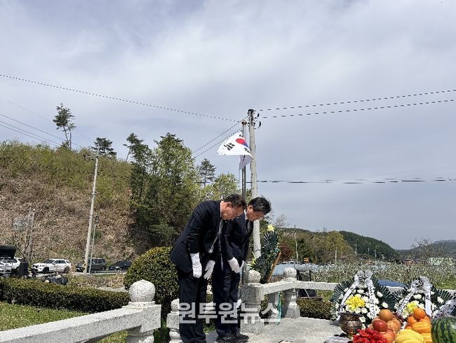 (원투원뉴스) 충북 영동군은 지난 19일 영동군 학산면 봉소리 압치마을(추모비 앞)에서 4·19 제66주년 기념 故 이기태 열사 추모식을 개최했다고 밝혔다.