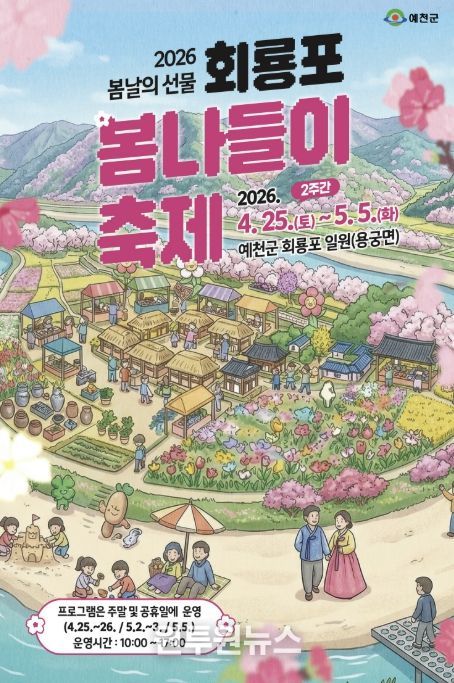 (원투원뉴스) 예천군은 오는 4월 25일부터 5월 5일까지 용궁면 회룡포 일원에서 '2026 회룡포 봄나들이 축제'를 개최한다.