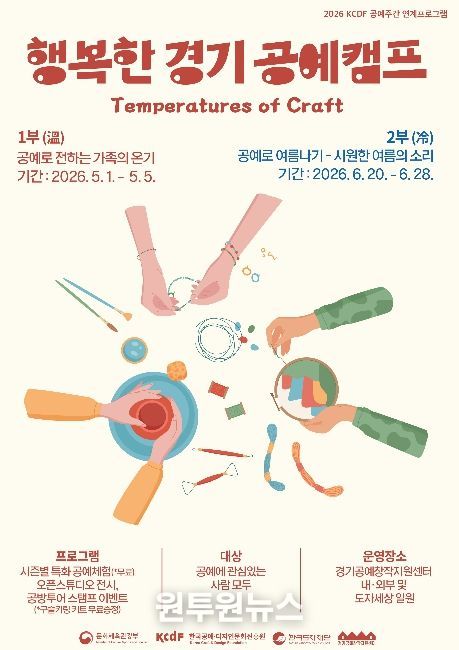 (원투원뉴스) 한국도자재단이 오는 5월 1일부터 경기공예창작지원센터(여주) 일원에서 체험·전시·이벤트를 결합한 참여형 프로그램 ‘2026 행복한 경기 공예 캠프’를 개최한다.