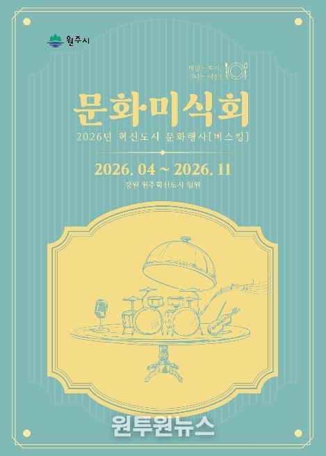(원투원뉴스) 원주시는 오는 21일 낮 12시, 건강보험심사평가원 1사옥 앞 야외 공연을 시작으로 ‘2026년 혁신도시 문화미식회’의 막을 올린다. 이어 25일 오후 2시에는 혁신도시 미리내사거리 분수광장에서 버스킹 공연을 진행한다.