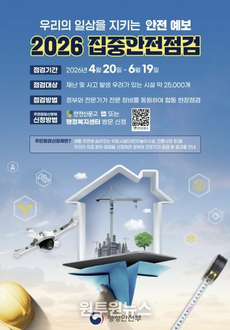 (원투원뉴스) 삼척시가 각종 재난과 사고를 예방하고 시민의 안전의식을 높이기 위해 4월 20일부터 6월 19일까지 ‘2026년 집중안전점검’을 실시한다.