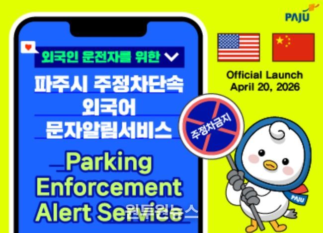 이번 서비스는 주정차 금지 구역에 차량을 세운 운전자에게 실시간으로 단속 상황을 안내해 자발적인 차량 이동을 유도함으로써 과태료 부과를 사전에 방지하기 위한 기존 제도를 외국인까지 확대한 조치로, 최근 파주시 내 외국인 거주자와 운전자가 꾸준히 증가하는 추세를 적극 반영한 결과다.