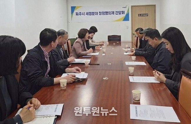 (원투원뉴스) 파주시는 지난 15일 대한법무사협회 파주시지부, 농협은행 파주시청출장소와 함께 세정 분야 청렴문화 확산을 위한 청렴협의체 간담회를 개최했다.