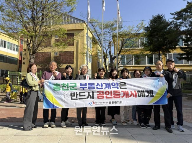 (원투원뉴스) 한국공인중개사협회 강원특별자치도 지부 홍천군지회는 16일 오전 9시, 홍천읍 꽃뫼공원 및 인근 상가 밀집 지역에서 군민들을 대상으로 ‘안전한 부동산 거래 문화 정착을 위한 캠페인’을 전개했다.