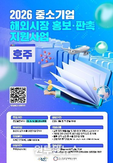 (원투원뉴스) (재)충남창조경제혁신센터는 2026년 중소기업 해외시장 홍보판촉 지원 사업에 참여할 논산소재 수출 기업을 오는 5월 5일까지 모집한다고 밝혔다.