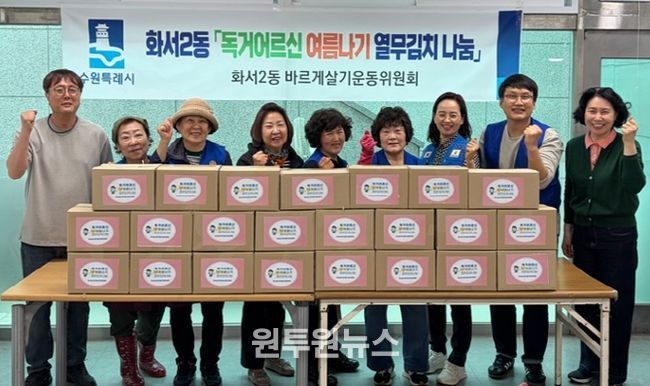 (원투원뉴스) 수원시 팔달구 화서2동 바르게살기운동위원회는 지난 17일, ‘독거어르신 여름나기 열무김치 나눔’에 참여해 지역 내 어려운 이웃을위한 따뜻한 나눔활동을 펼쳤다.