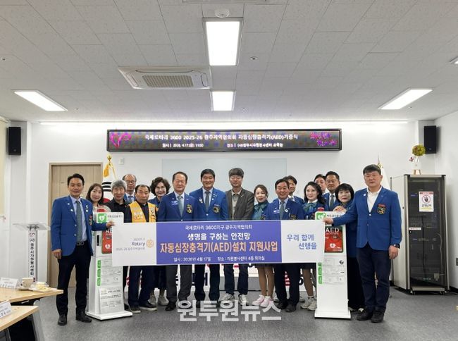 (원투원뉴스) 국제로타리 3600지구 2025-26 광주지역협의회는 지난 17일 광주시자원봉사센터 4층 교육장에서 자동심장충격기 기증식을 개최하고 500만 원 상당의 장비 2대를 전달했다.