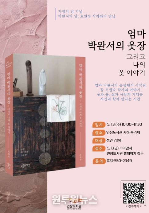 (원투원뉴스) 구리시립도서관은 '호원숙 작가와의 만남 ‘엄마 박완서의 옷장, 그리고 나의 이야기’' 참여 신청을 오는 5월 1일부터 접수한다고 밝혔다.