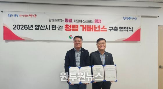 (원투원뉴스) 양산시 경제국은 청렴 실천을 위한 민·관 협력체계를 구축하고 청렴 시책의 실효성을 높이기 위해 양산시 소상공인연합회(회장 우현욱)와 민·관 청렴 거버넌스 협약을 체결했다고 밝혔다.