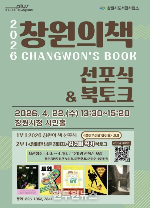 (원투원뉴스) 창원특례시 도서관사업소는 오는 4월 22일 오후 1시 30분, 창원시청 시민홀에서 시민들과 함께하는 ‘2026 창원의 책’ 선포식을 개최한다고 밝혔다.