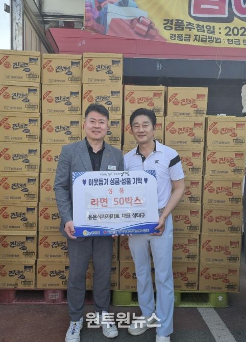 (원투원뉴스) 양평군 용문면은 지난 19일, 용문면 소재 용문식자재마트가 관내 어려운 이웃을 위해 라면 50박스를 기부했다고 밝혔다.