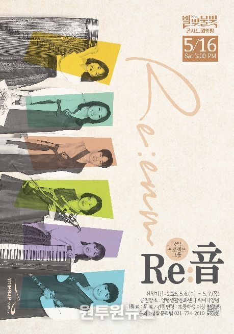 (원투원뉴스) 양평문화재단은 오는 5월 16일 오후 3시, 양평문화재단 2층 씨어터양평에서 ‘별빛물빛 콘서트 in 양평’ 5월 정기공연으로 국악 프로젝트 그룹 Re:音(리음)의 공연 ‘국악의 빛으로 물든 디즈니’를 선보인다.