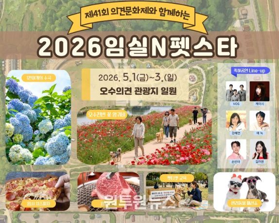 군은 오는 5월 1일부터 3일까지 임실 오수의견관광지 전역에서 제41회 의견문화제와 연계한‘2026 임실N펫스타’를 개최한다고 밝혔다.