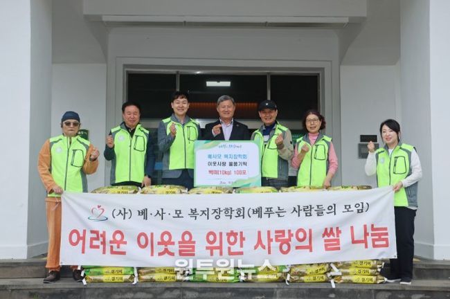 베사모복지장학회는 지난해에도 회원들이 정성을 모아 마련한 쌀(10kg) 200포를 제주시에 기탁한 바 있다.