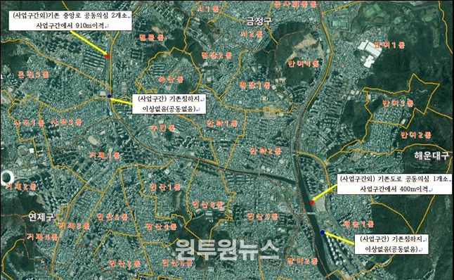(원투원뉴스) 부산시는 4월 5일 발생한 만덕~센텀 도시고속화도로 인근 포장면 침하(약5~7cm) 구간에 대하여 4월 5~7일 부산광역시와 국토교통부 산하 국토안전관리원에서 실시한 GPR탐사 및 정밀조사 결과, 최근 포장면 침하 구간 및 주변 도로에는 공동(空洞)이 발견되지 않았으며, 공사영향 범위 밖 기존 도로에 경미한 공동(空洞) 3개소가 발견됐다고 밝혔다.