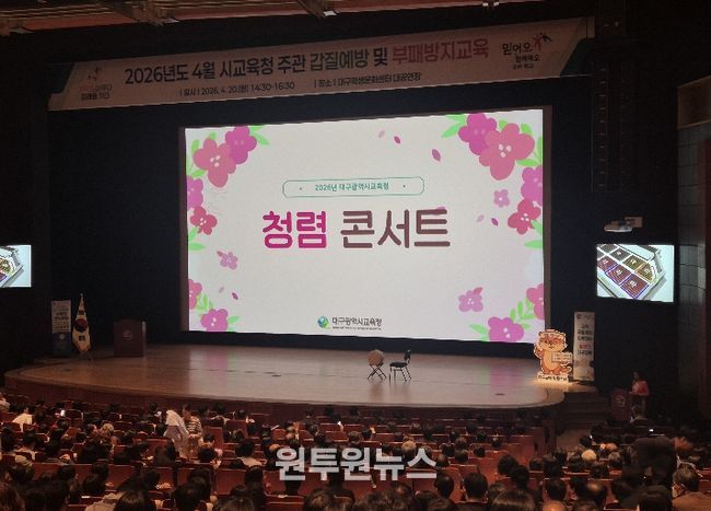 (원투원뉴스) 대구시교육청은 4월 20일 오후 2시 30분부터 대구학생문화센터 대공연장에서 교직원 및 관리자 등을 대상으로 ‘청렴콘서트’를 개최했다.
