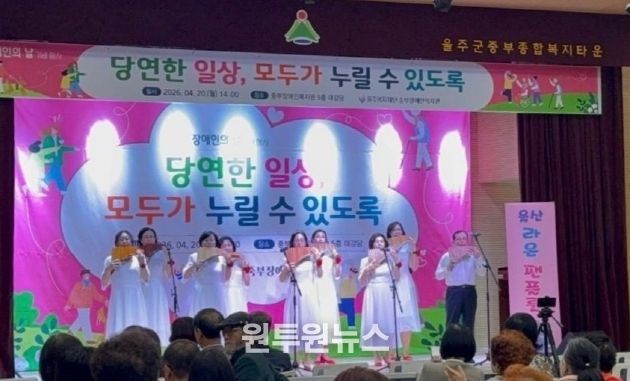 (원투원뉴스) 올해 울주 평생학습동아리 지원사업에 선정된 신규 동아리 ‘라온팬플룻’ 동아리가 20일 울주군 중부장애인복지관에서 열린 장애인의 날 기념행사에서 재능기부 공연을 펼쳤다.