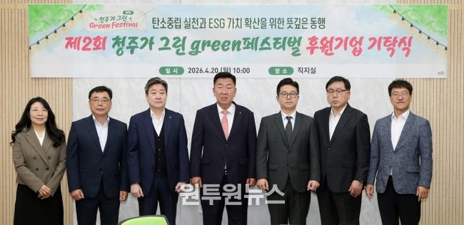 (원투원뉴스) 청주시는 20일 시청 임시청사 직지실에서 ‘제2회 청주가 그린 Green 페스티벌’의 성공적인 개최를 위한 후원기업 기탁식을 개최했다.