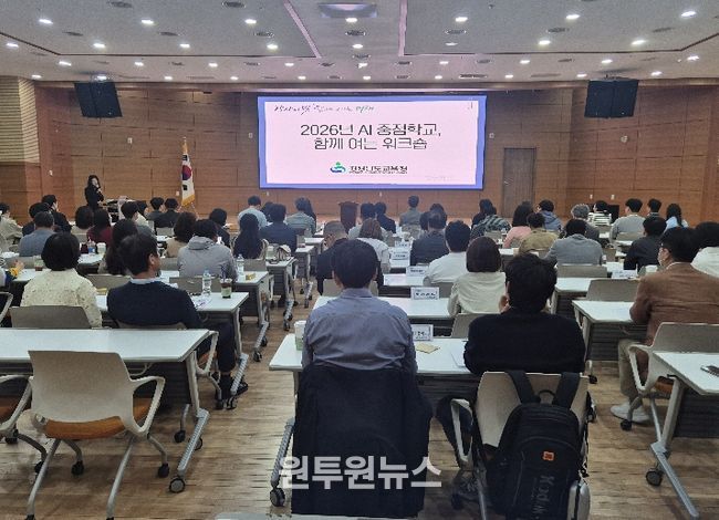 (원투원뉴스) 경상남도교육청은 20일 창원시 진해구 이순신리더십 국제센터에서 ‘2026년 인공지능(AI) 중점학교, 함께 여는 워크숍’를 열었다. 이번 워크숍은 학교 교육과정을 중심으로 인공지능 교육을 내실화하고, 학생들의 컴퓨팅 사고력*과 디지털 소양을 키우기 위한 현장의 실행력을 높이고자 마련됐다.