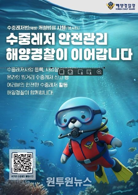 (원투원뉴스) 해양경찰청은 수중레저 사업장 증가와 이용객 증가에 「수중레저활동의 안전 및 활성화 등에 관한 법률」(약칭. 수중레저법)을 시행(4.23.)하며 수중레저 안전관리를 강화한다고 밝혔다.