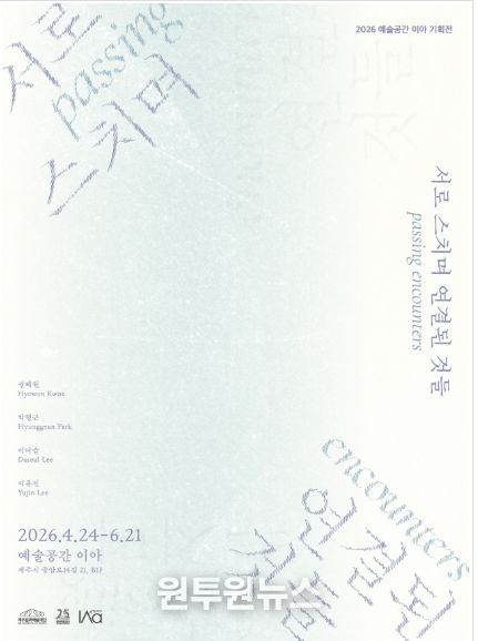 (원투원뉴스) 제주문화예술재단은 창립 25주년을 맞아 오는 24일부터 6월 21일까지 예술공간 이아 B1 전시실에서 기획전 《서로 스치며 연결된 것들 : Passing Encounters》를 개최한다.