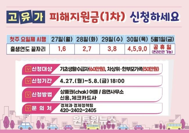 신청·지급 기간은 1차의 경우 4월 27일부터 5월 8일까지, 2차는 5월 18일부터 7월 3일까지다.