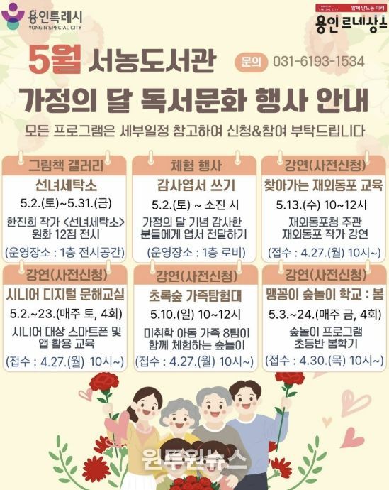 (원투원뉴스) 용인특례시 서농도서관은 오는 5월 가정의 달을 맞아 다양한 세대를 아우르는 프로그램으로 이뤄진 ‘2026년 5월 독서문화행사’를 마련했다고 21일 밝혔다.