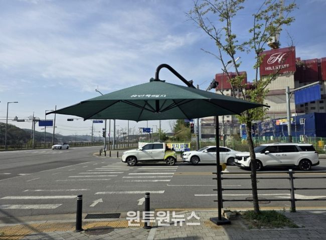 (원투원뉴스) 용인특례시 처인구는 올해 지역내 주요 보행로와 횡단보도에 폭염을 피할 수 있는 그늘막을 46개를 설치했다고 21일 밝혔다.