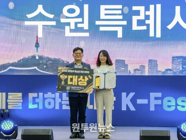 (원투원뉴스) 수원특례시가 ‘제6회 대한민국 축제 엑스포 베스트 축제 어워드’에서 기초자치단체 부문 대상을 받았다. 시상식은 19일 수원컨벤센센터에서 열렸다.