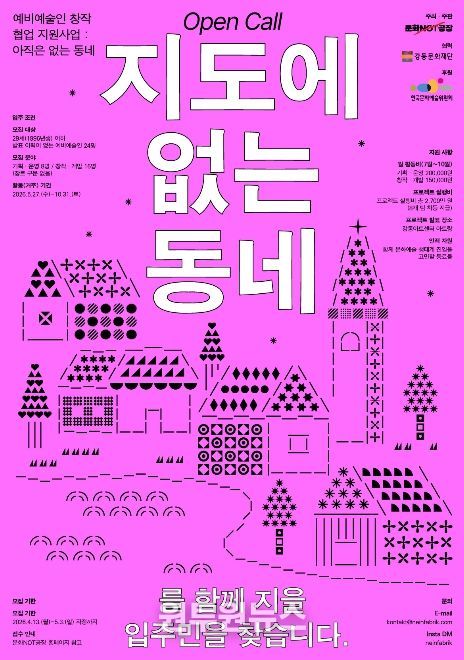 특히 이번 사업은 혁신적인 참여자 선발과 운영 방식으로 눈길을 끈다. '아직은 없는 동네'에는 일방적으로 점수를 매기는 외부 심의위원이 없다. 서류를 통과한 지원자들은 5시간의 원탁회의를 통해 서로의 철학과 작업을 탐색하고, 함께 작업할 동료를 직접 선택하게 된다. 선정 이후에도 주최 측이 일방적으로 예산을 배분하지 않고, 총 2,700만 원 규모의 프로젝트 실행비를 24명의 참여자가 '예산분배 토론회'에서 치열하게 토론하며 직접 나누어 가진다. 누군가 정해주는 규칙을 따르는 대신, 참여자들이 스스로 방식과 타협점을 만들어가는 과정을 겪게 되는 것이다.